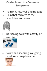 - Costochondral pain– Chest pain caused by the inflammation of the cartilage in the rib cage (Costochondritis) that mimics the pain caused due to a heart attack or other heart conditions.