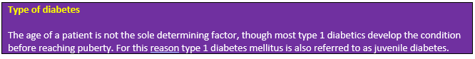 - The type of Diabetes mellitus represented by the category (secondary diabetes, drug induced, type 1 or type 2)