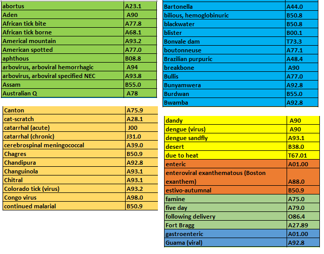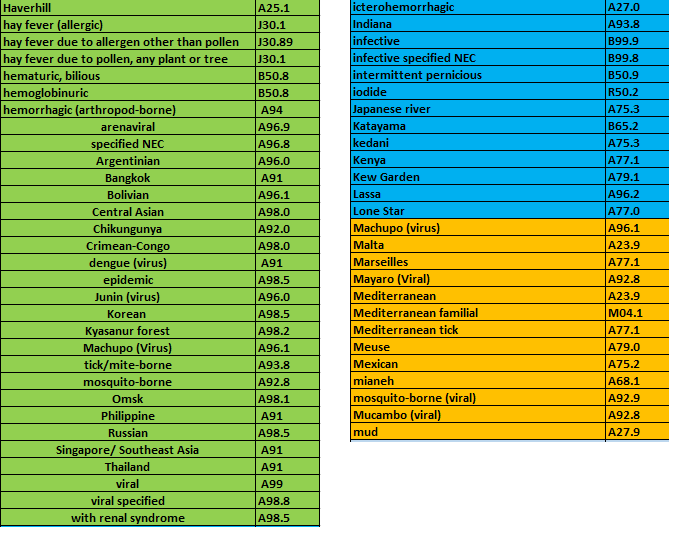 - Assam fever is another name for _____________ and the ICD-10 code is _____________.