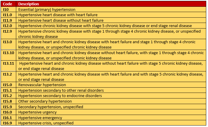 The below Hypertension guidelines have been taken from the ICD-10-CM Official Guidelines for Coding and Reporting FY 2021 provided by the Centers for Medicare and Medicaid Services (CMS) and the National Center for Health Statistics (NCHS).