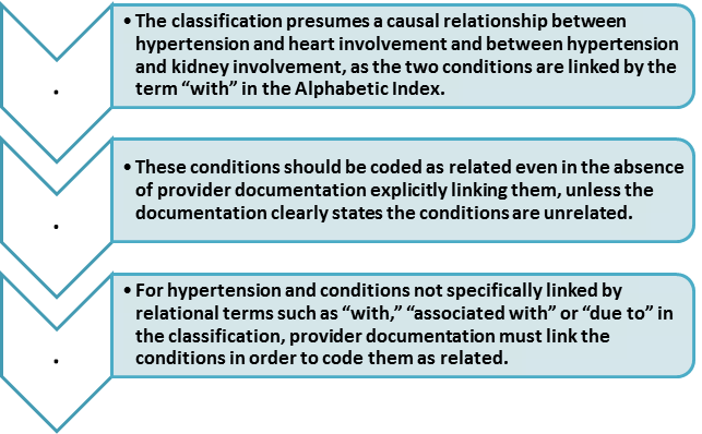 Hypertension is a very common chronic problem that many patients especially the elderly ones suffer from. Accurate documentation regarding the cause/type of hypertension is the key to accurate coding of the diagnoses related to hypertension.